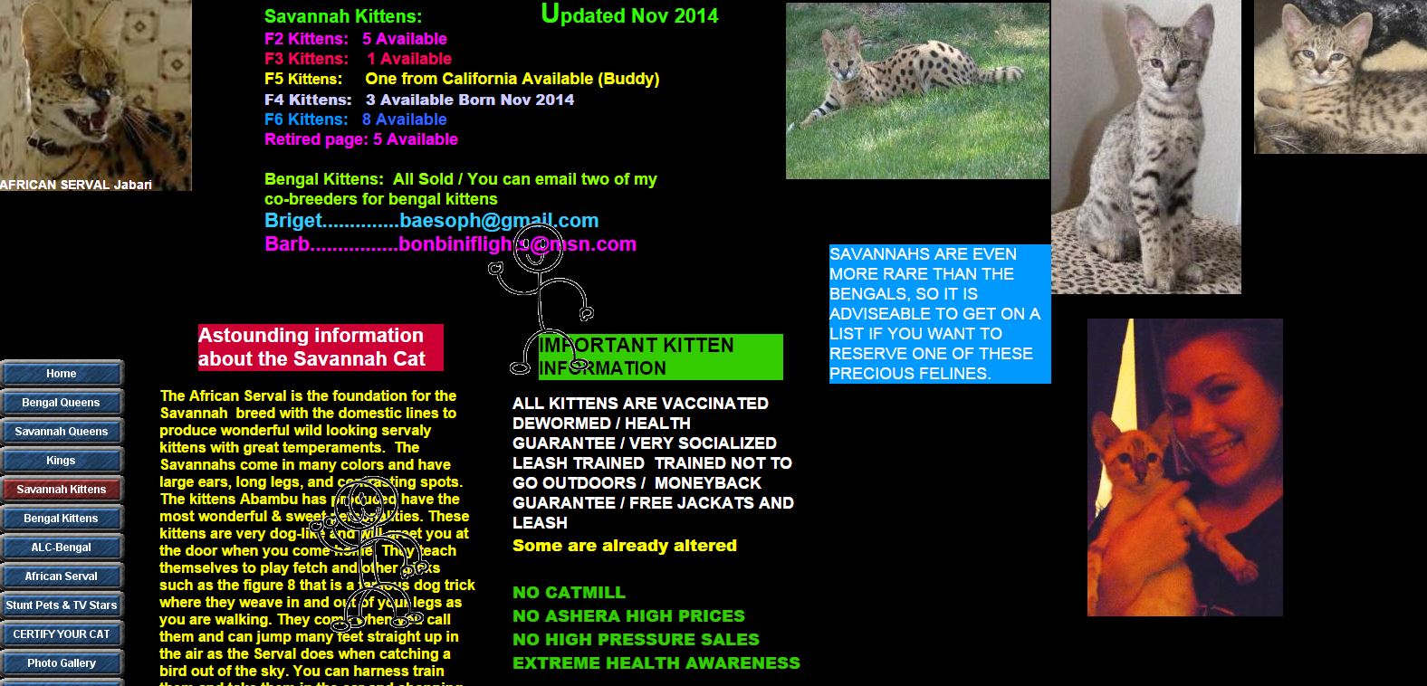 Can we say NEON?! Wow. Yes, I’m using the Bengal Cat site again. It’s a perfect illustration of the colors used in ’90’s websites. (And there’s that boxy side navigation I was referencing above.) I remember a lot of black backgrounds with the most vibrant text possible. In design, we often talk about elements “standing out” and perhaps the ’90’s website font color choices was the origin of this idea. Because those colors, if nothing else, pop.