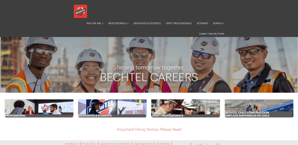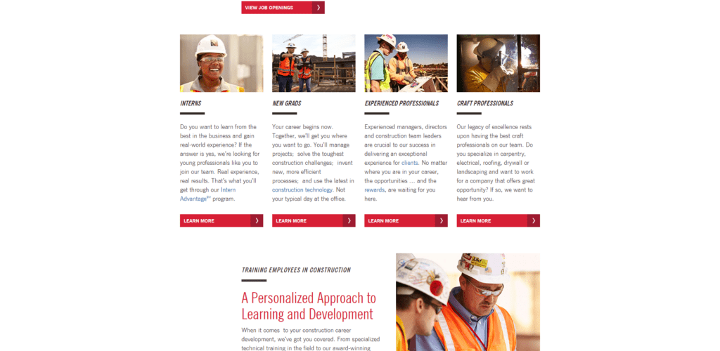 Most commercial and heavy highway construction companies have at the very least a careers page linked from their top main site navigation.