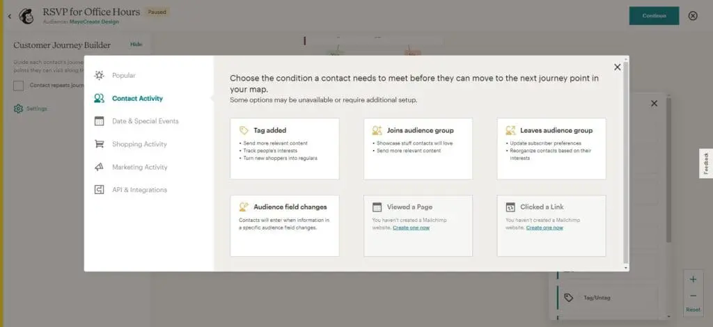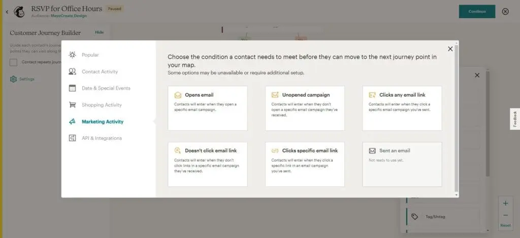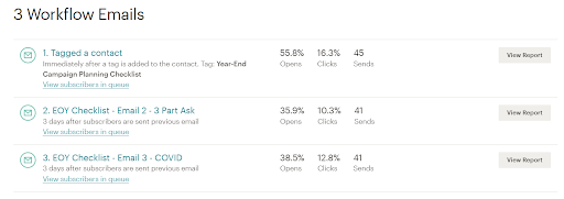 You can however see email reports from classic automations in MailChimp. Classic automations are pretty functional but limit your flexibility to an extent because EVERY action has to include an email. With a Journey you can add people to a group, update profile information, add tags, all without sending an email.