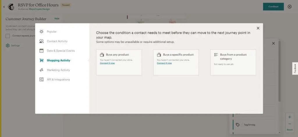 If you delete a point in your Journey in MailChimp it will delete all the points after it…ALLL OF THEM. I about cried when I did this and had to rebuild all the emails and every lovin thing just because I decided to simplify the Journey.