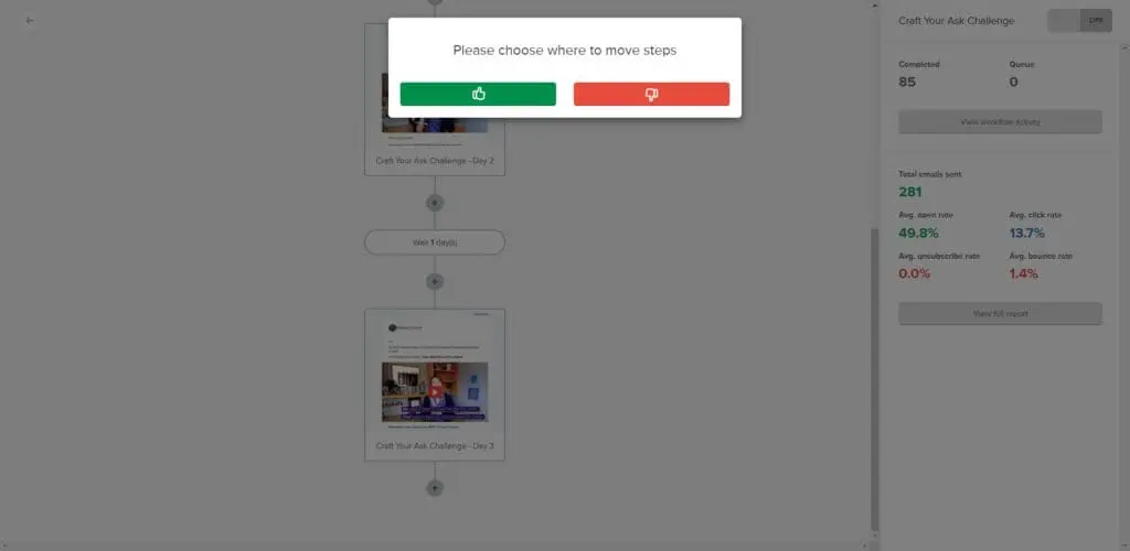 Aaand I’d like to give a gold star to MailerLite for asking me if I want to delete all the stuff after a point in my automation when I decide to delete a step.