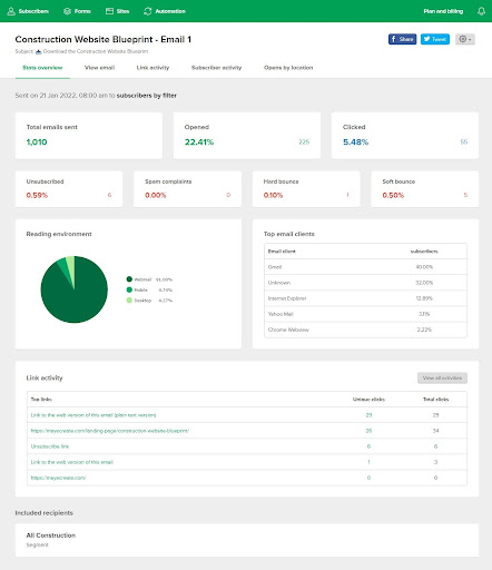 MailerLite offers a quick overview of data and you can dig deeper for more.