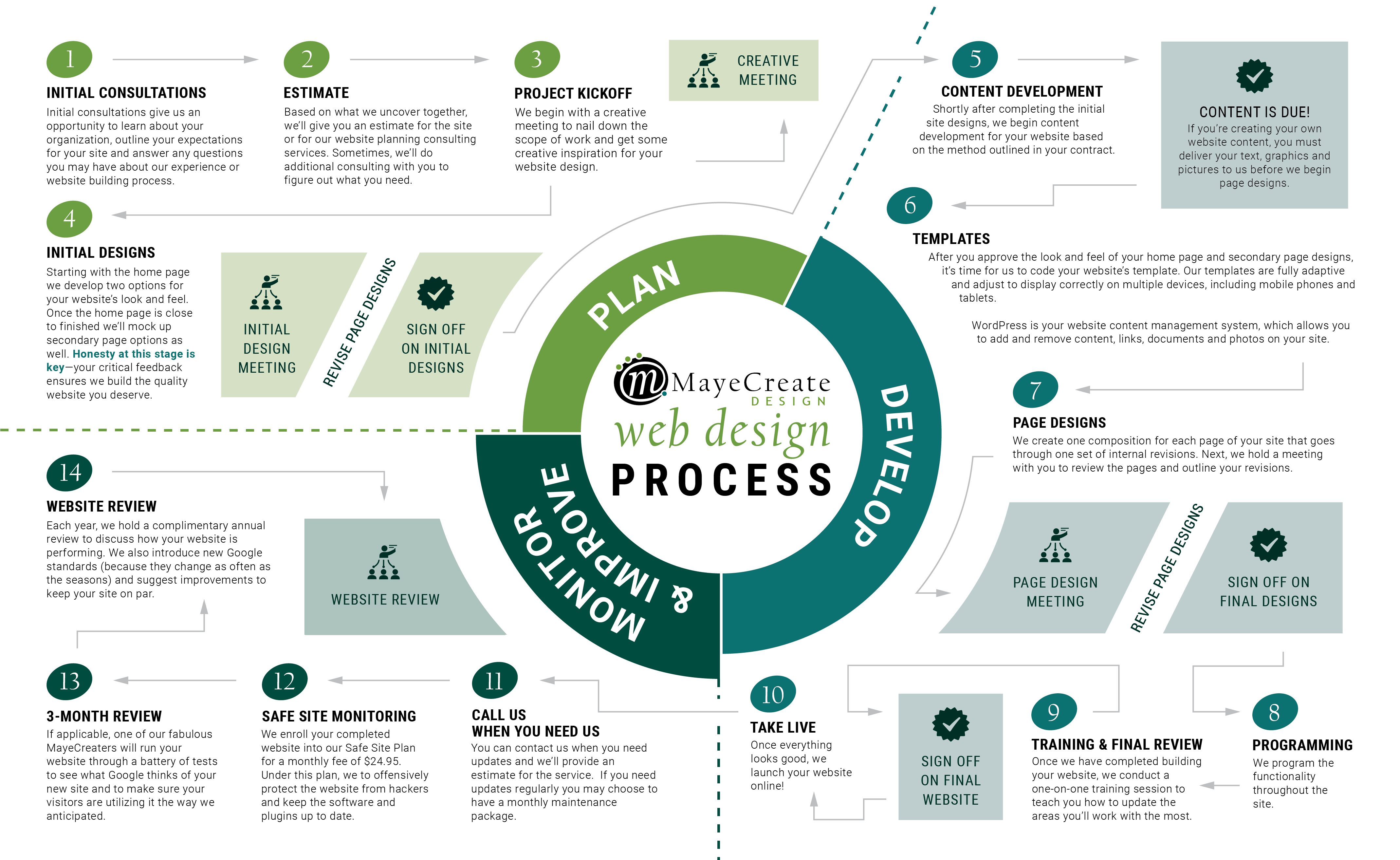For at least the last 13 years we’ve built sites on a 3 month timeline, spacing the steps out over time so we could keep workflow even and give clients time to meet their deadlines.
