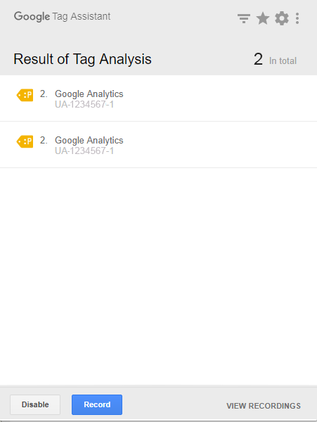 If you see only one tracking code with your property ID with a green tag icon, you’re good to go. My guess is you won’t see this color, because you wouldn’t have a bounce rate of 0 and therefore likely wouldn’t be reading this article…