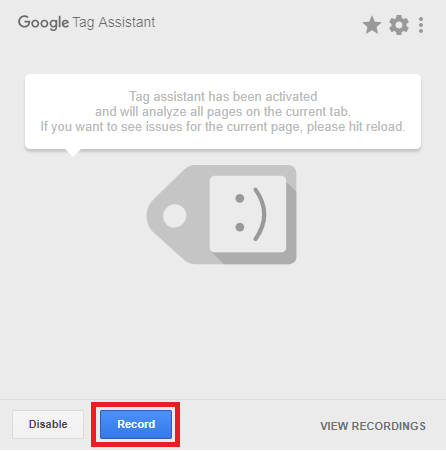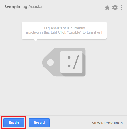 - Click on the Tag Assistant icon and click the blue “Enable” button: